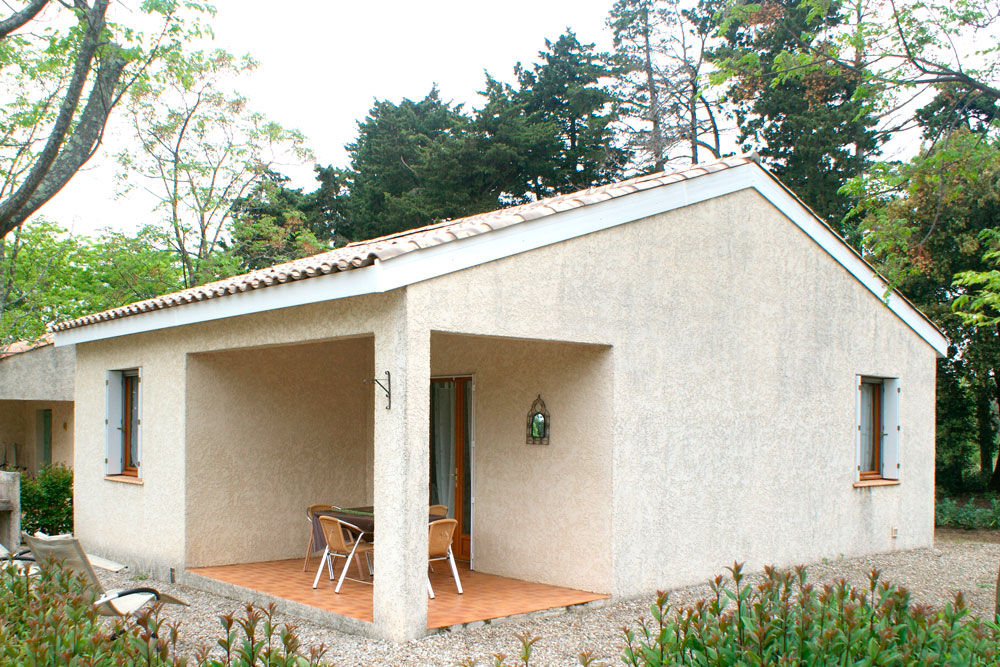 Salle de séjour, coin cuisine, coin salon, 1 chambre (1 lit 2 personnes 160×200), 1 chambre (2 lits 1 personne 90×190), salle d’eau, WC indépenadant, chauffage électrique. Terrasse, salle de jeux, piscine commune (5X10) chauffée (du 01/05 au 30/09), barbecue, terrain et parc ombragés.